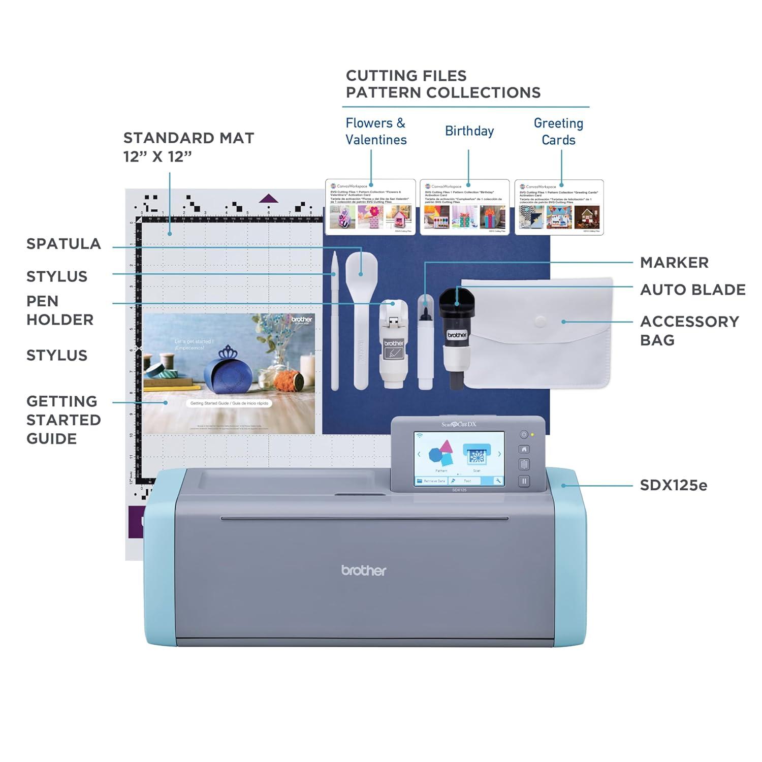 ScanNCut, the only series of home and hobby cutting machine with a built-in scanner has essentially everything else you need to create stunning projects right out of the box. UP TO 600 DPI BUILTIN SCANNER Scan Designs: Turn your scanned drawing into unique one of a kind cut designs and patterns. Scan Material: No need to count mat blocks Place your pattern on your scanned material. Create Sticker, Labels, and Applique: Scan printed stickers, labels, or fabric and directly cut the pattern design you want to cut. AUTO BLADE No Material Selection Required: With Blade Sensor Technology, the auto blade can detect the thickness of the material. Cuts up to 0. 1″ (3mm) Thickness: Cut thick materials like foam and leather up to 0. 1″ (3mm) thickness. 5” LCD TOUCH SCREEN DISPLAY Optional Use of Computer: Edit using the 5” LCD touch screen display. Optional Use of the Internet: Machine is wireless ready for optional PC and mobile device connection. 682 Built-in Patterns: ScanNCut is preloaded with clipart, basic shapes, and fonts. INTERNAL MEMORY & FLEXIBILITY Save Designs On the Machine: ScanNCut has internal memory that will let you save design data on the machine. Transfer Files Wirelessly: Use your computer or mobile device and transfer files wirelessly. Use USB Drive: Save. Fcm or SVG files on a USB drive, use the USB port on the machine, and retrieve the file you would like to use. HALFCUT SETTING: Using the half cut setting, cut the top layer of vinyl or sticker sheets and not the bottom layer. READS SVG FILES: Create new SVG files using your preferred software or use existing. SVG file patterns. ADVANCE EDITING OF PC or MOBILE DEVICE: With Canvas Workspace you can create or enhance original cutting and drawing designs. Work from the convenience of the cloud or on our new PC software. GREAT FOR OFFICE AND LATE NIGHT USE: The Brother SDX125Ee is also whisper quiet, allowing you to cut materials with ease and without disturbing others. : This Brother machine is backed by a 1 year limited along with online technical support for the life of the product.