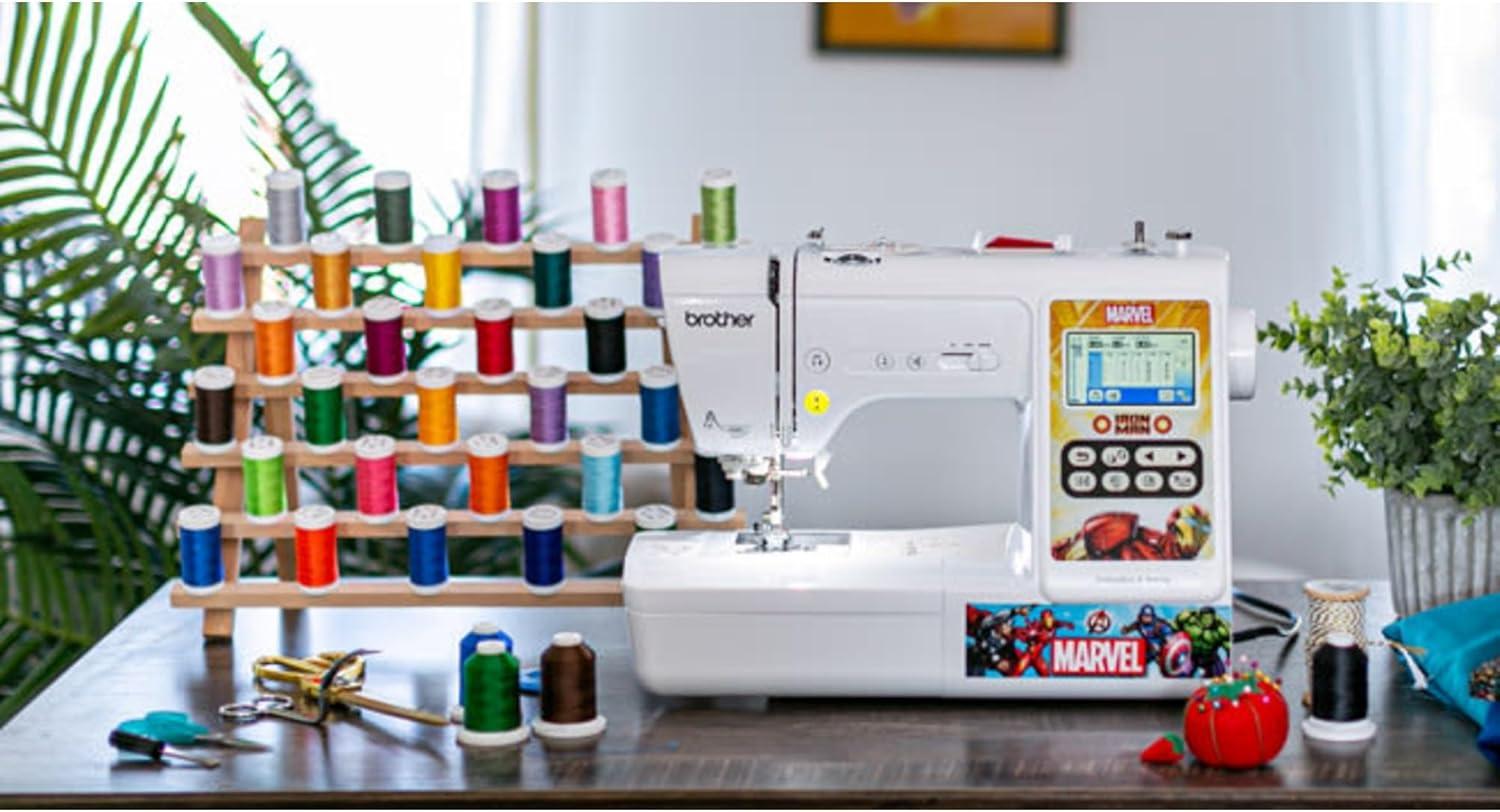 Brother Sewing and Embroidery Machine, 4 Marvel Faceplates, 10 Downloadable Marvel Designs, 80 Designs, 103 Built-In Stitches, 4" x 4" Hoop Area, 3.2" LCD Touchscreen Display, 7 Included Feet