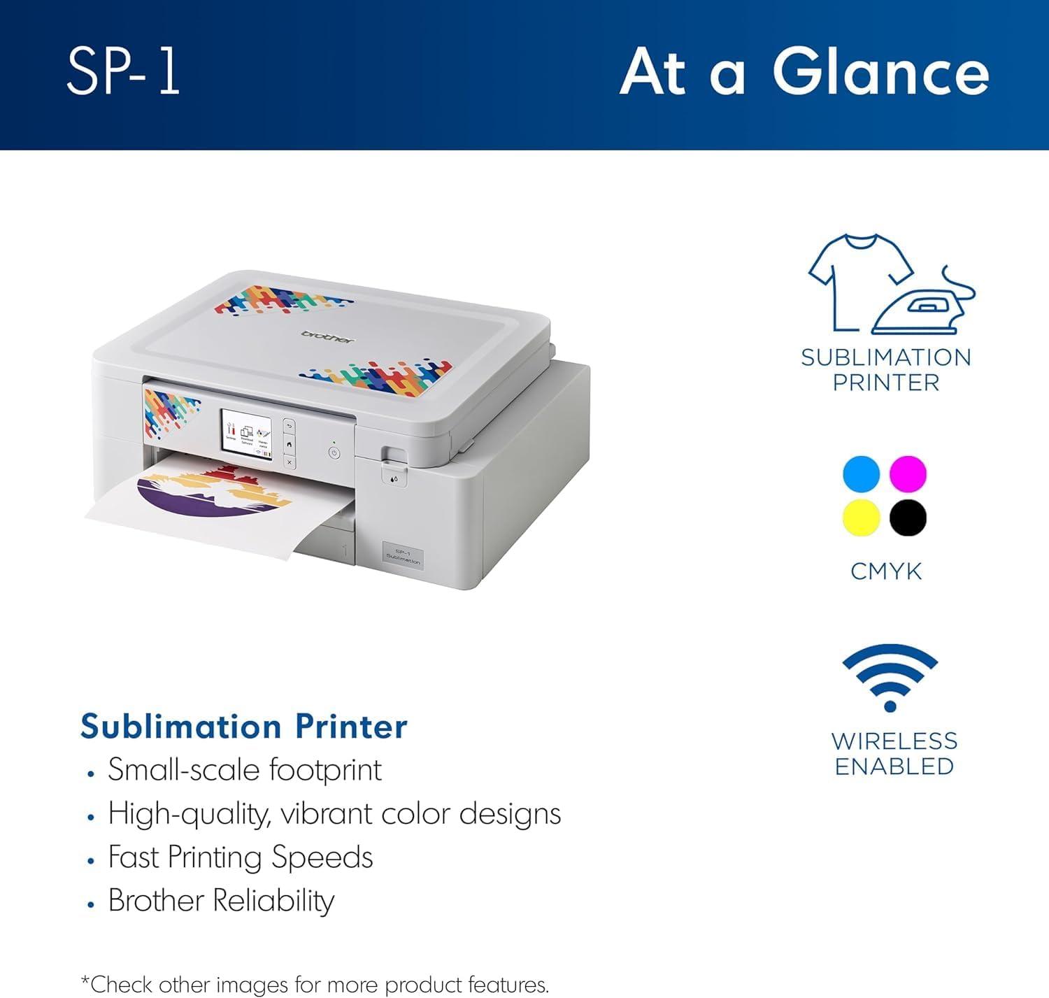 Press Once, Wash Often! : The Brother SP1 is designed to create projects with longevity. Unlike traditional iron on or iron pressed vinyl transfers, sublimation used the heat and pressure of a heat press that melts the ink into polyester coated items (mugs, shirts, bags, hats and more!) and stays vibrant throughout multiple wash and wear cycles.